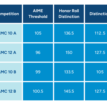 The MAA just announced the AIME thresholds. This year, AIME I will take place on February 6, 2025, while the alternate AIME II is scheduled for February 12, 2025. You can learn more about the AIME and our invitational competitions here